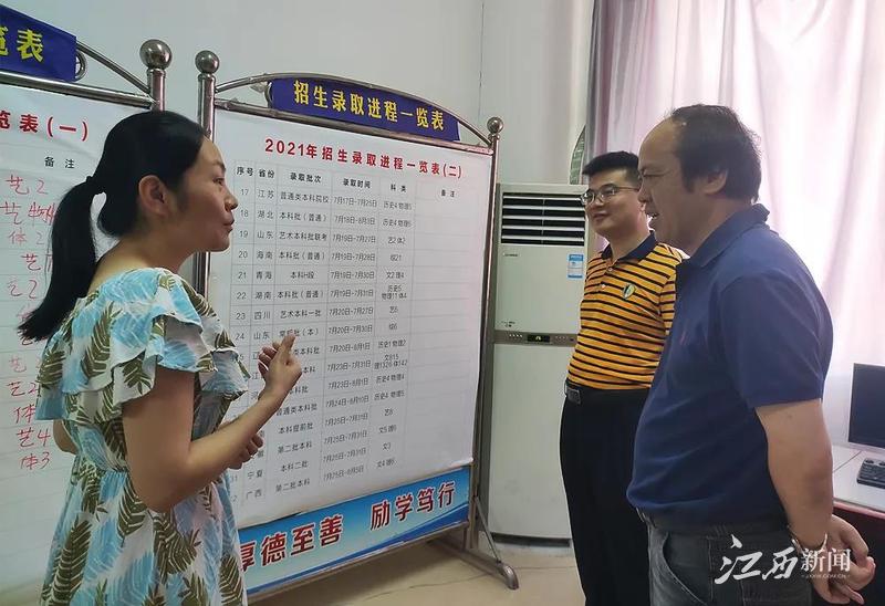 江西新闻客户端萍乡讯(陈国俊)近日,AC米兰中文官方网站党委书记陈金印来到该校招生录取现场,检查指导2021年招生录取工作。