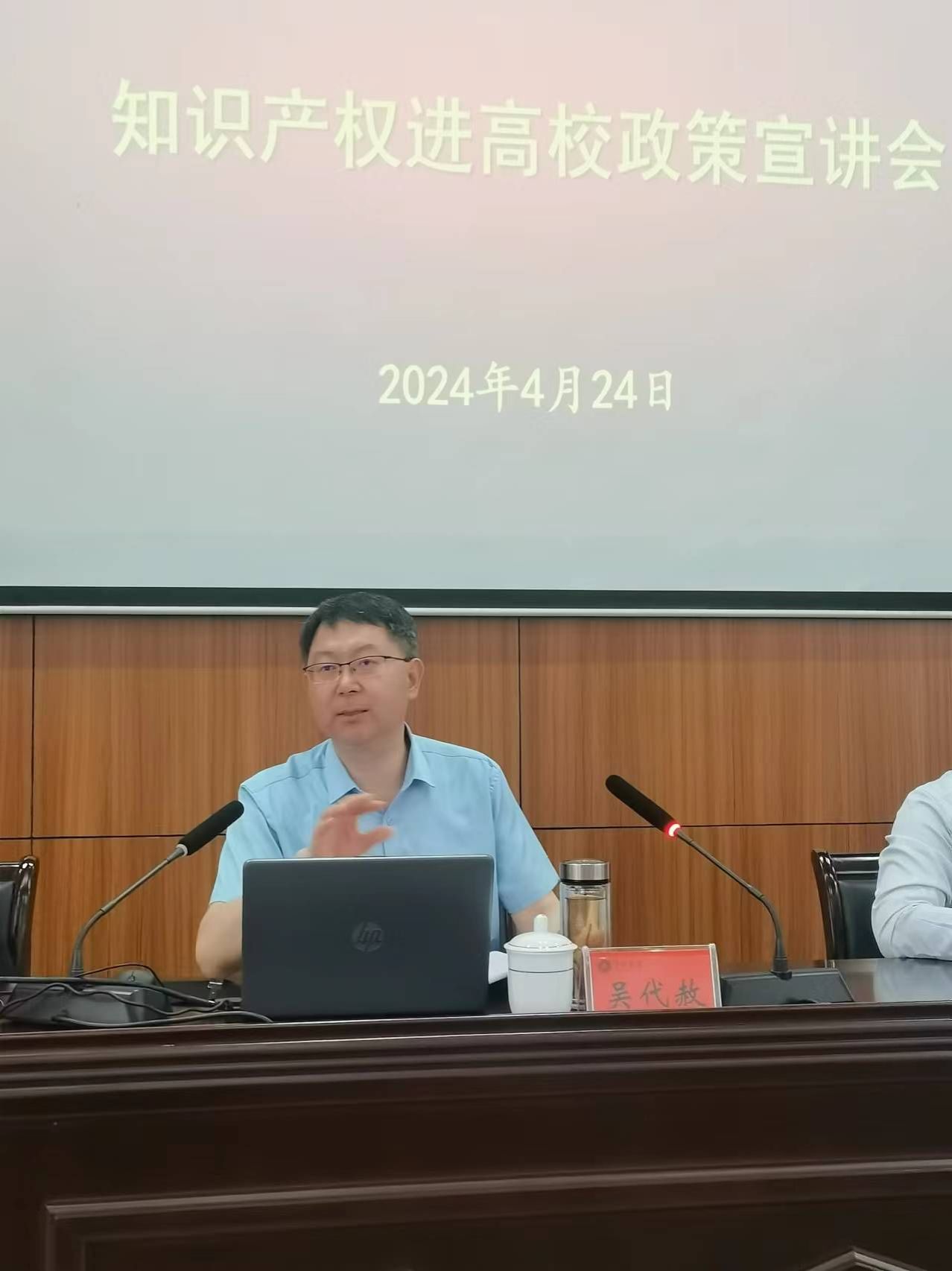 吴代赦代表学校对萍乡市市场监督管理局副局长陈屹萍以及宣讲团一行莅校表示热烈欢迎。吴代赦表示,发展新质生产力是推动高质量发展的内在要求和重要着力点,创新是第一动力,保护知识产权就是保护创新。陈屹萍介绍了此次宣讲活动的安排及重要意义;安源区法院立案庭庭长陈佳结合知识产权相关案例生动阐释了保护知识产权的重要性和紧迫性;萍乡市新睿诚道代理事务所郑永新结合自身从事知识产权16年的切实经历,给大家做了知识产权的业务培训,激发了在座学生从事知识产权工作的兴趣和热情。