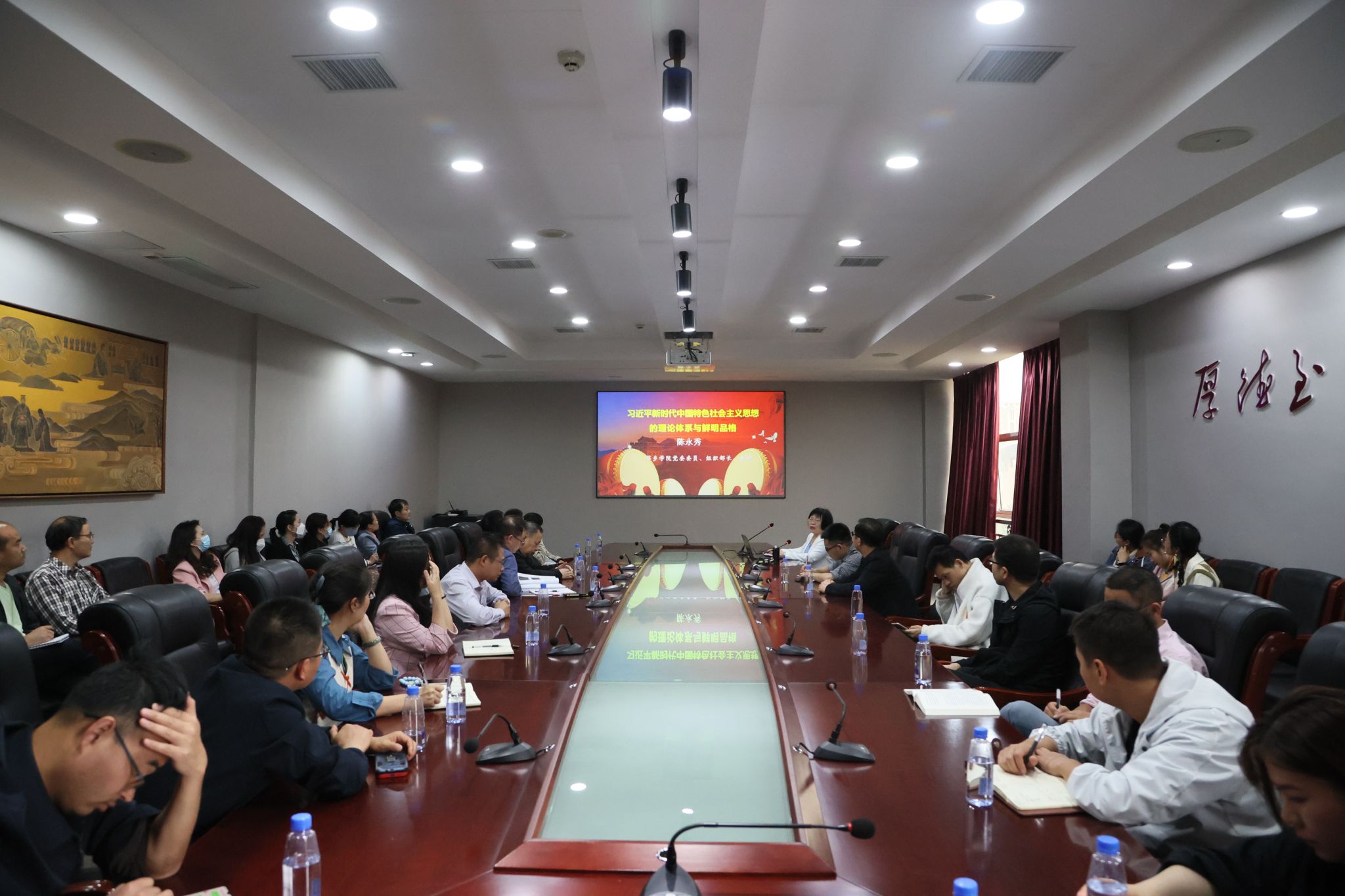 陈永秀以“习近平新时代中国特色社会主义思想的理论体系与鲜明品格”为题,围绕“习近平新时代中国特色社会主义思想的基本内容和方略”“坚持把马克思主义同中国具体实际相结合、同中华优秀传统文化相结合”“习近平新时代中国特色社会主义思想的鲜明品格”等方面,对习近平新时代中国特色社会主义思想的理论体系和品格作了深入阐述,对学习贯彻习近平新时代中国特色社会主义思想主题教育总要求、总目标、具体目标、重点措施等方面作了解读。