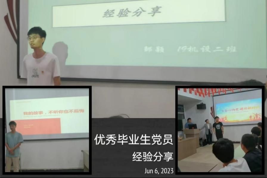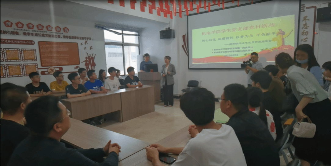 活动的第三项由已毕业的党员学长学姐们送来远方的祝福视频,他们多数是机电学院的第一届本科毕业生,他们结合自己毕业后的工作经历,生活经验,分享他们的宝贵经验,并送上他们诚挚的祝福,让毕业生党员坚定了踏上人生新征程的勇气和信心。