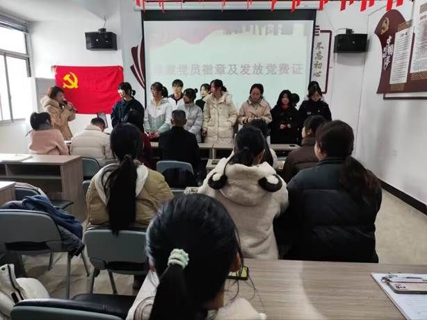 活动第五项,党员重温入党誓词。由曹金萍书记领誓,同志们共同重温了入党誓词,提醒着每名党员同志牢记对党的庄严承诺,以实际行动践行入党誓词。