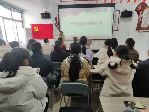 活动第一项,全体起立合唱《国际歌》。重温这首代表无产阶级革命精神的《国际歌》,激励着各位同志团结起来为实现共同的理想和目标而奋斗。活动第二项,学习党旗党徽条例。曹金萍书记带着同志们再次学习了《中国共产党党徽党旗条例》,教育引导同志们正确认识党徽党旗的深刻内涵,自觉规范使用党徽党旗及其图案。