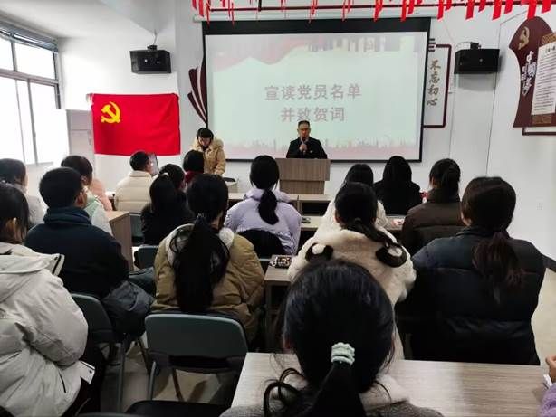 活动第三项,外国语学院党委书记刘佳萍宣布过“政治生日”党员名单,并致贺词,刘书记对全体同志提出了三点要求,一是要发挥党员的先锋模范作用;二是要强化党的观念和党的意识;三是永葆党的纯洁性和先进性。活动第四项,由全体老师为新成为预备党员的12名同志佩戴党员徽章并发放党费证。