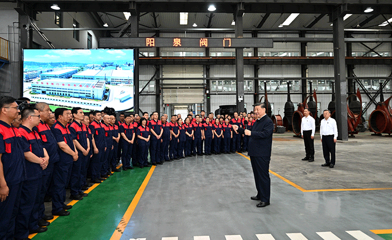 7月7日至8日,中共中央总书记、国家主席、中央军委主席习近平在山西考察。这是7日下午,习近平在阳泉阀门股份有限公司考察。(新华社记者 谢环驰/摄)