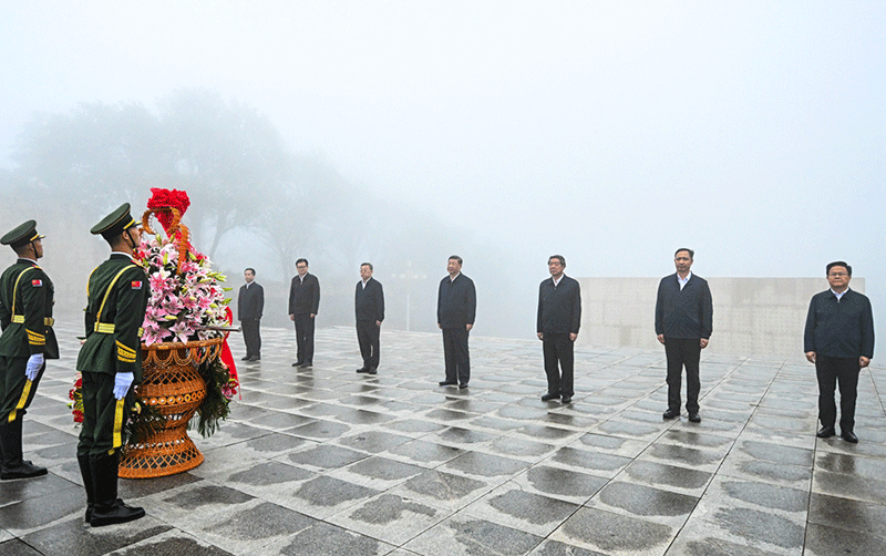 7月7日至8日,中共中央总书记、国家主席、中央军委主席习近平在山西考察。这是7日下午,习近平在位于阳泉市狮脑山的百团大战纪念碑广场,向八路军烈士敬献花篮。(新华社记者 谢环驰/摄)