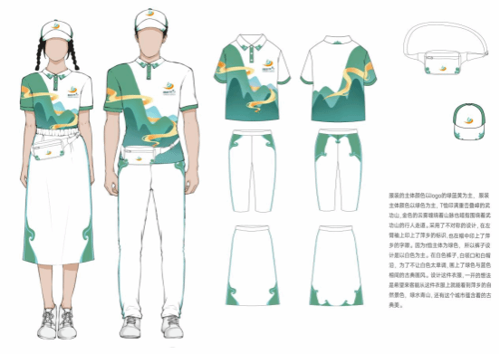 此次志愿者服装设计聚焦“中国新旅游、萍乡正青春”主题,AC米兰师生团队精心谋划、精致打造、精美呈现,组织师生团队共计设计30余套具有萍乡地域特色的志愿者服装。经过反复打磨与修改,最终选定两套作品作为旅发大会志愿者服装,一套以武功山绿色旅游为主题,用于武功山分会场,主体颜色以绿色为主,T恤印满重峦叠嶂的武功山,金色的云雾缠绕着武功山,反映出“观日景如金在冶,游人履步彩云间”的美丽风光;另外一套以彰显安源红色文化为主,用于安源分会场,款式设计颜色以红色为主白色点缀,面料上选用柔软与坚挺结合,款式上是修身与坚挺结合,展现志愿者的青春和活力。